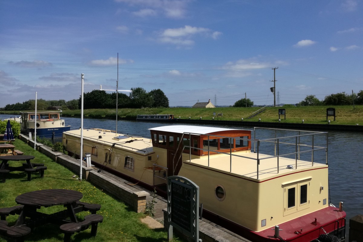 All this had taken about five hours. At last the walk through and handover. Wow, she was better than I had in my head. Build quality is brilliant. Now for the quick motor out of the marina on to the Great Ouse river. I had a play with the controls and moored at the fuel station dock. (With a lot of help.) The Lethbridge Stewart had arrived and was ours. That’s it, we are on our own now with a new home a full tank of diesel and overflowing water tanks. The world is ours, well the rivers and canals that are big enough for us.